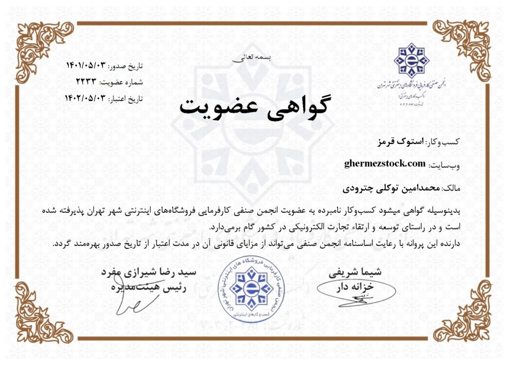 2- مجوز انجمن صنفی کسب و کارهای اینترنتی شهر تهران