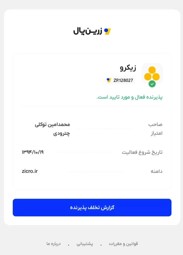 برای دیدن درگاه پرداخت مجوزدار در سایت زرین پال روی تصویر پایین کلیک کنید.