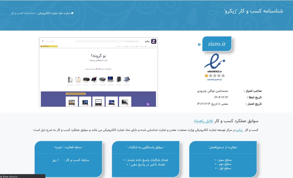 در زیر می توانید مجوزها و تاییده های صنفی و مجوزهای دولتی زیکرو را مشاهده بفرمائید.