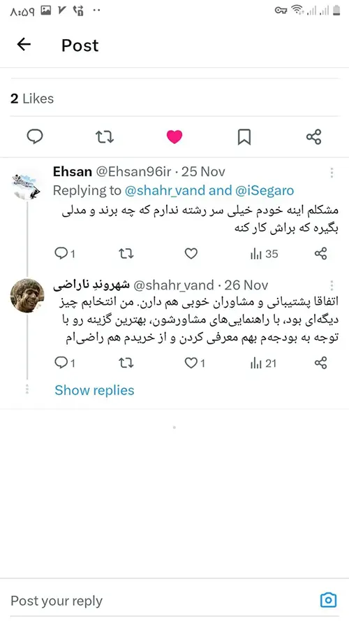 احترام به مشتری رو کاملاً رعایت میکنید.